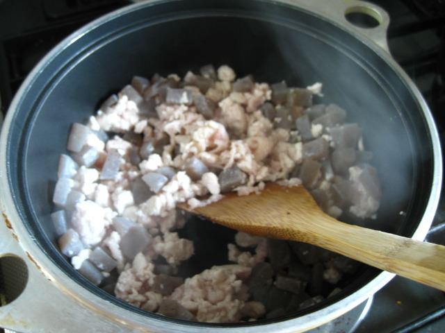 こんにゃくは手順7で、よく空炒りすることで、アクが抜けます。