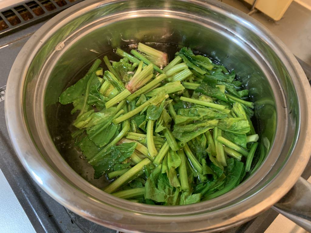 「グラッとくる」という状態です。あらかじめ切っておいたほうれん草は速攻でグラッときます。