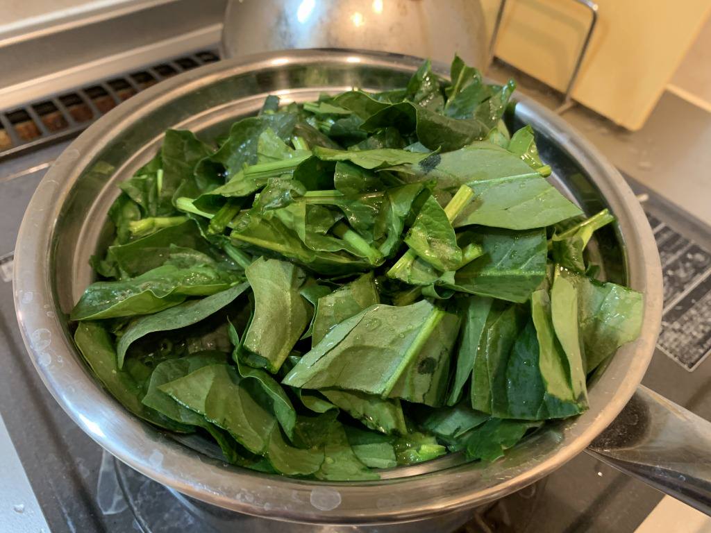ほうれん草をゆでて、調味料と和えて出来上がりです。