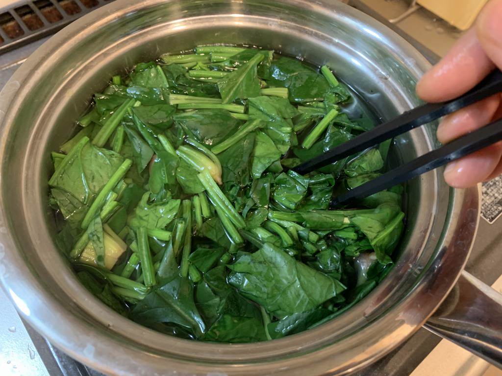 「グラッとくる」という状態です。あらかじめ切っておいたほうれん草は速攻でグラッときます。